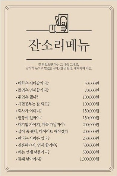 잔소리에 종류는 우리 삶에 무궁무진하게 녹아있다.
