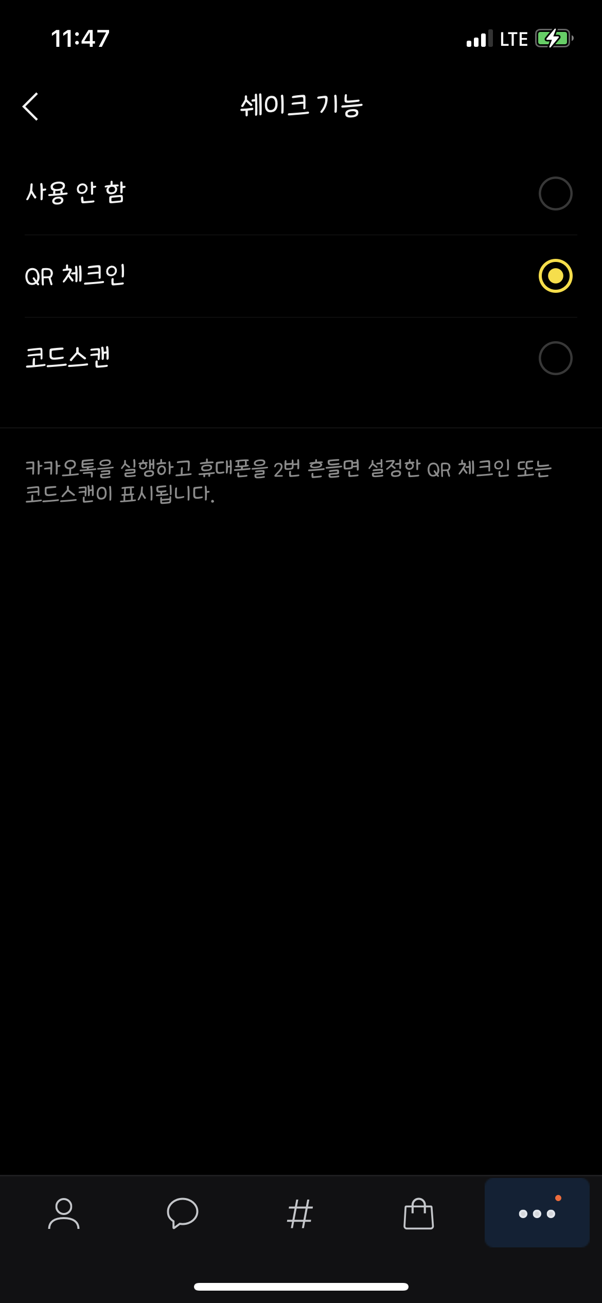 두어 번 흔들면 4번에 설정한 기능이 나타난다.