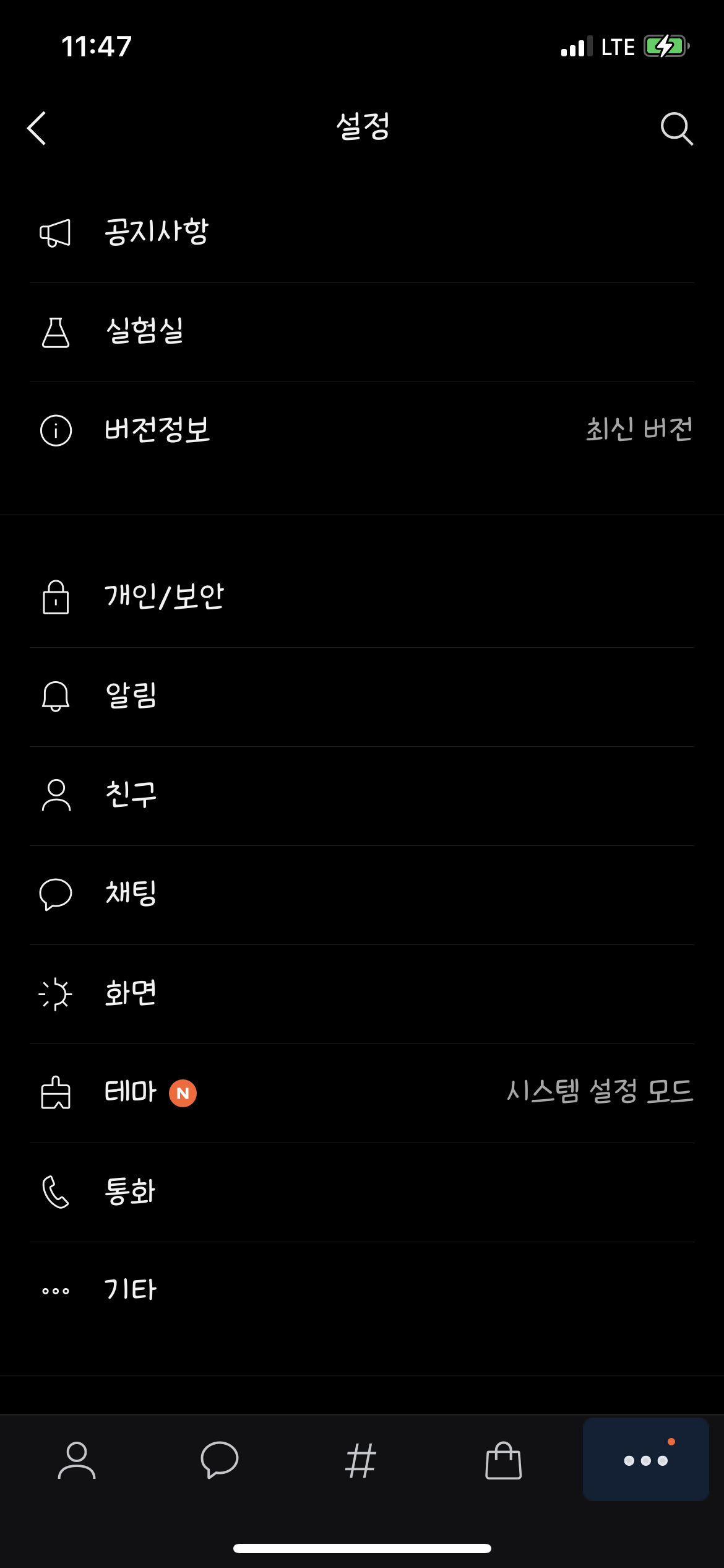 1. 카카오톡을 연 후 설정(점 3개 모양) 클릭