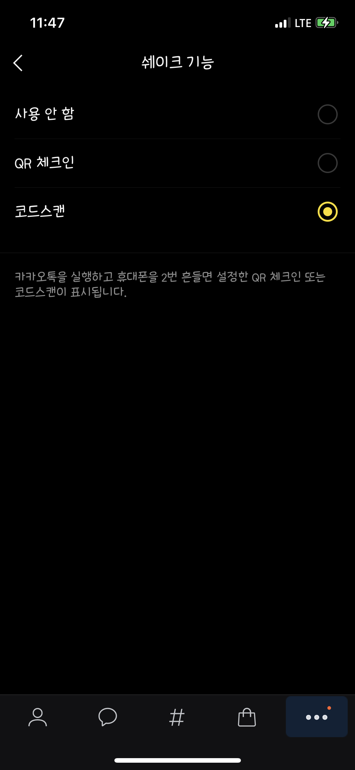 두어 번 흔들면 4번에 설정한 기능이 나타난다.