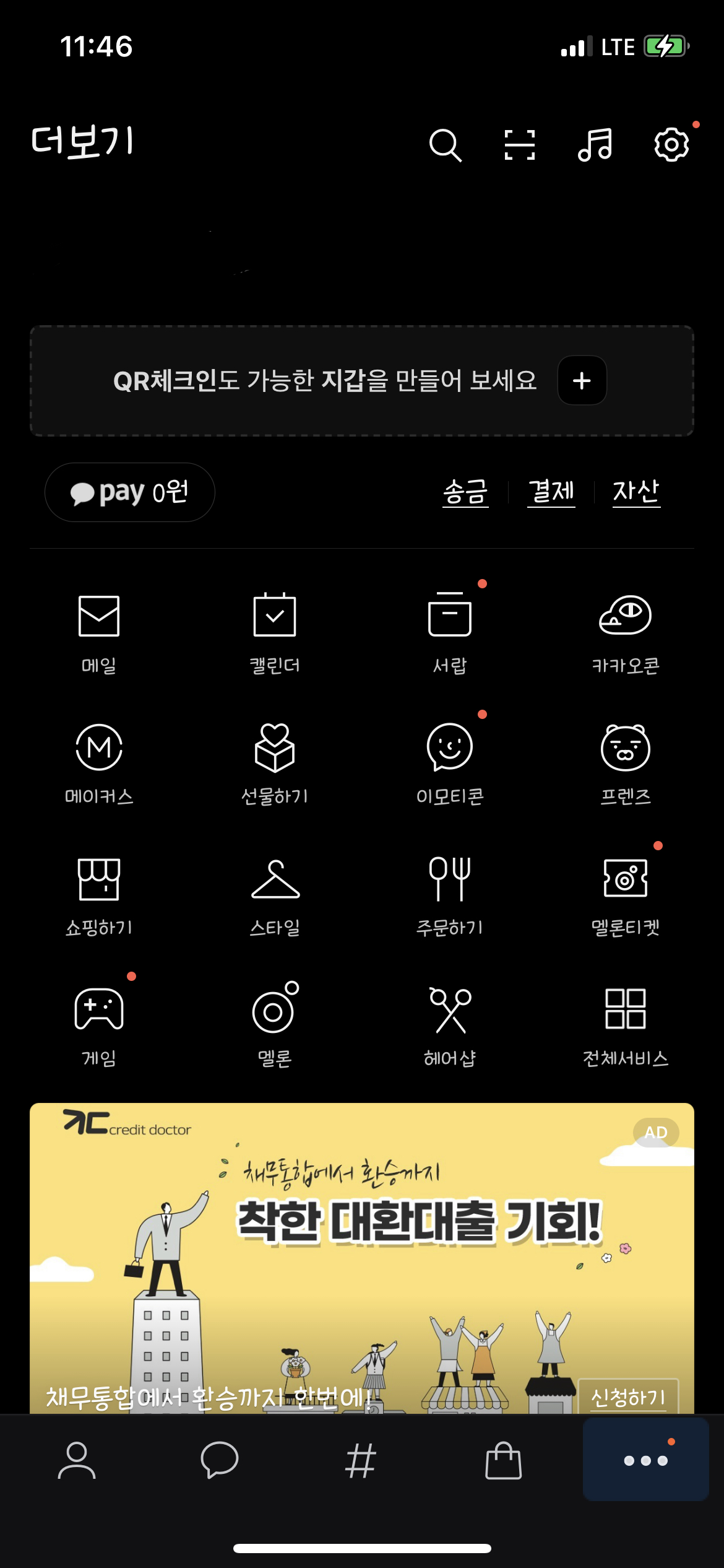 1. 카카오톡을 연 후 설정(점 3개 모양) 클릭