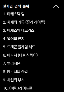 아이템명을으로 검색하면 연관검색어가 뜨기에 쉽게 검색하여 이동한다.