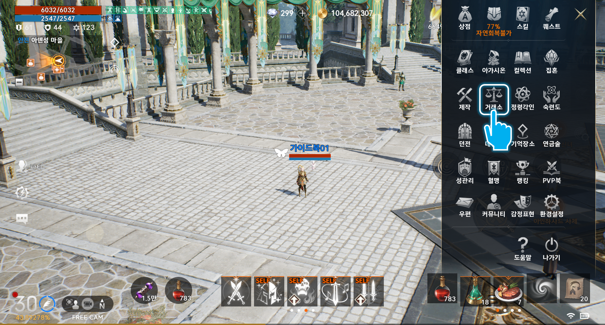 아이템을 구매하거나 시세 등을 확인하기 위해서 거래소에 등록된 모든 아이템을 검색 탭을 통해 확인할 수 있다.