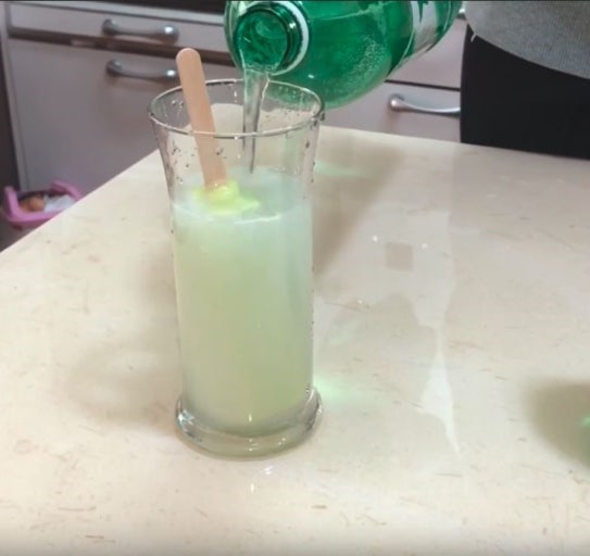 • 만드는 법: 컵에 메로나 넣고 사이다 부어 섞어줍니다.